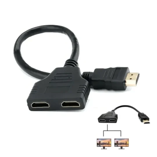 Adaptador Splitter HDMI 1.4 1 Macho a 2 Hembra – Duplica la señal HDMI de tu dispositivo a 2 pantallas simultáneamente con resolución Full HD 1080p y audio digital multicanal. Compatible con TV, monitores, proyectores y consolas, plug-and-play y diseño compacto.